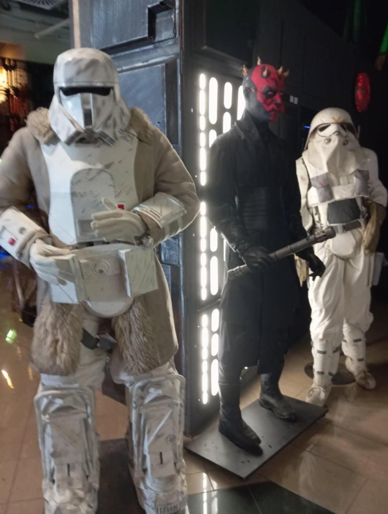 Darth Maul álarca látszik az újabb vitrin felett, ahol Star Wars figurák vannak.